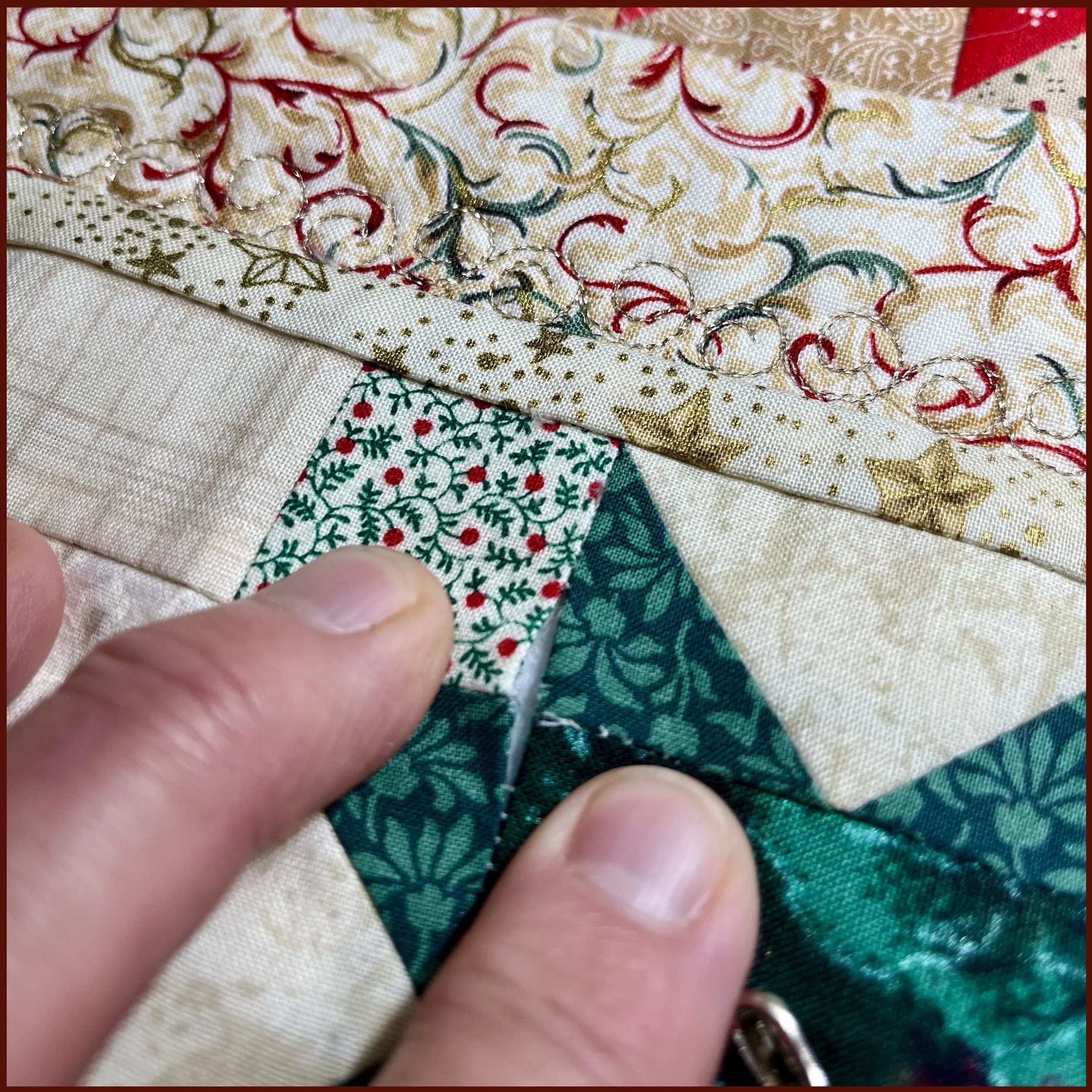 I started Christmas Stars 12 years ago and its pieces and parts have been placed into project boxes and taken back out many times - perhaps I was a little rough with it. Or more likely: I unstitched part of it to reposition the seam allowances and didn’t restitch it. That would be more like me.