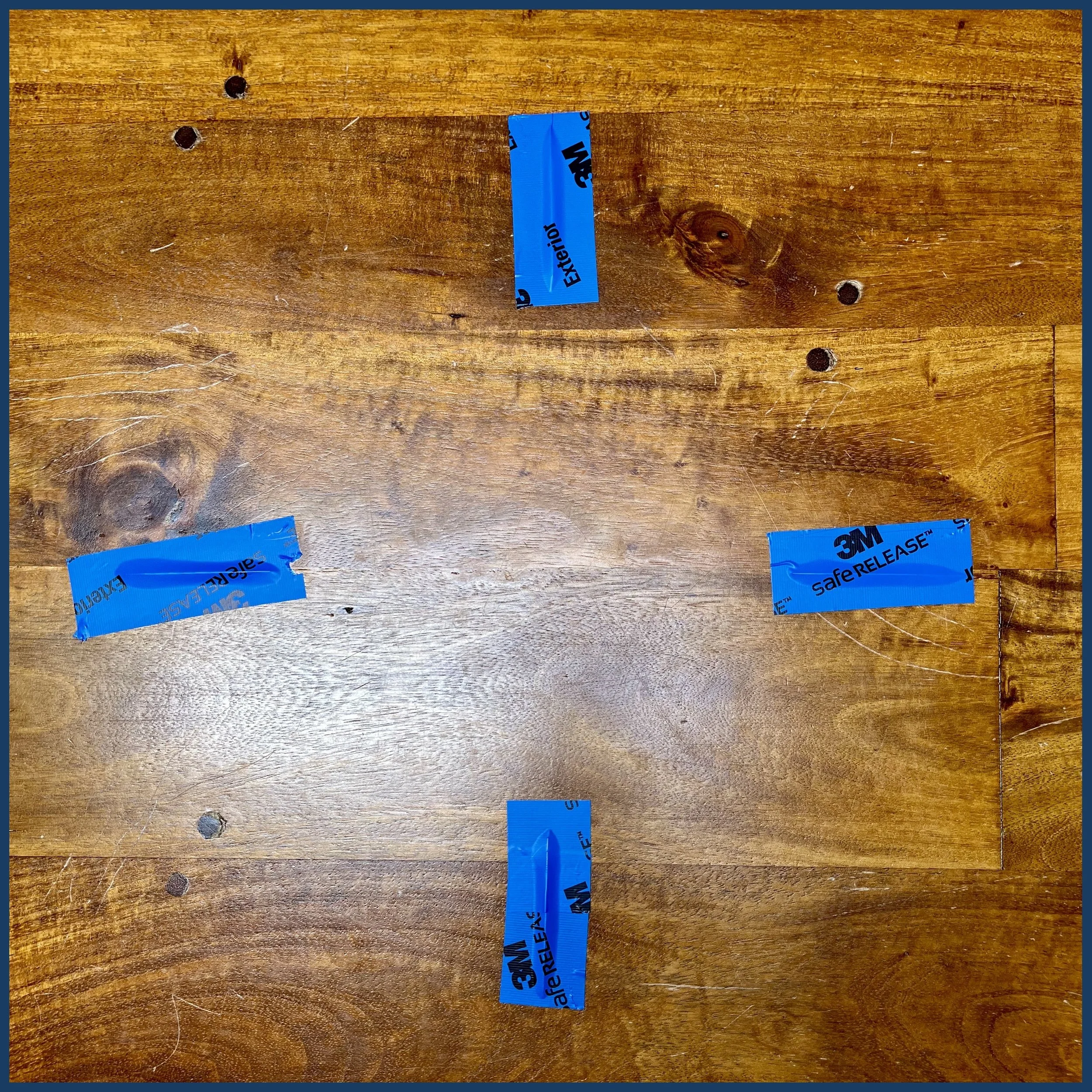 Toothpicks taped to the dining room table so I can feel the horizontal and vertical center through the layers.