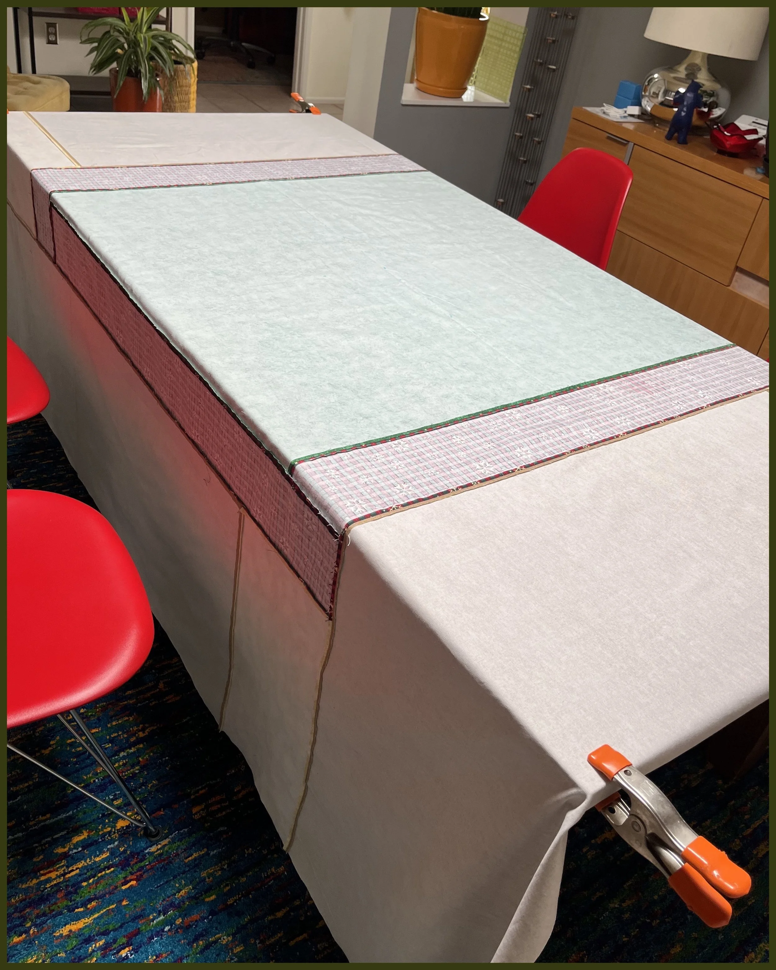 I pin baste and Christmas Stars for a New Day is the second largest quilt I’ve ever quilted. 30 years ago, I basted my largest quilt (96”x108”) on the floor. This one I’m doing in three segments on our dining room table.