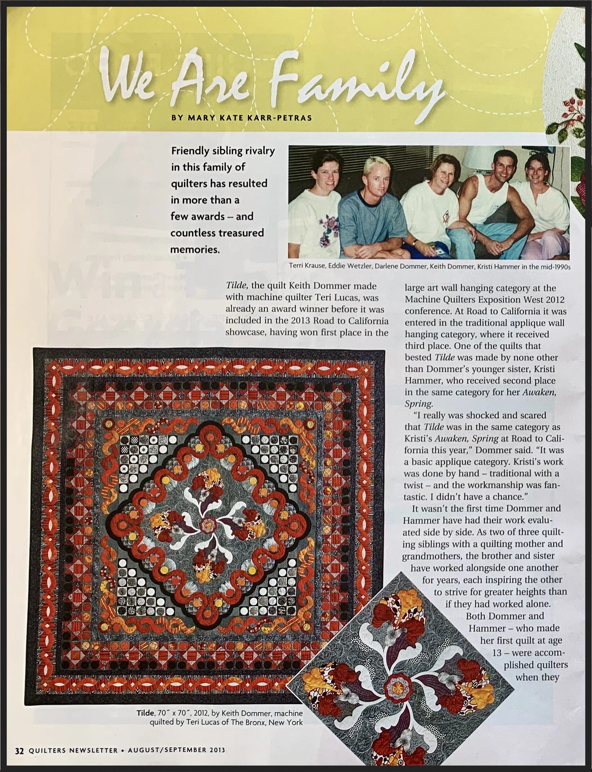 Tilde was featured in an article about our quilting family in the Aug/Sept 2013 edition of Quilters Newsletter Magazine - look at those quilt-making shoulders! =)