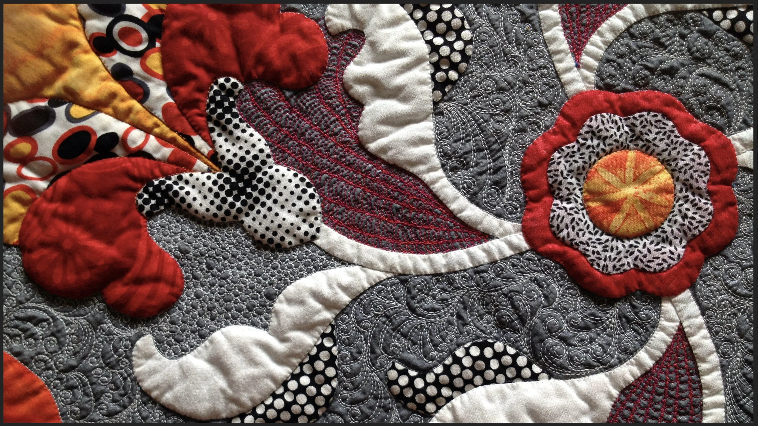 Details of Teri Lucas' fabulous domestic machine quilting and Keith Dommer's turned-edge machine applique